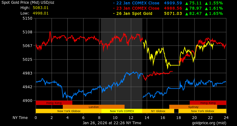 Giá vàng tương lai giao tháng 2/2026 trên sàn Comex New York hôm qua tăng mạnh 102,8 USD, tương ứng tăng 2,06% lên mức 5.082,5 USD/ounce.