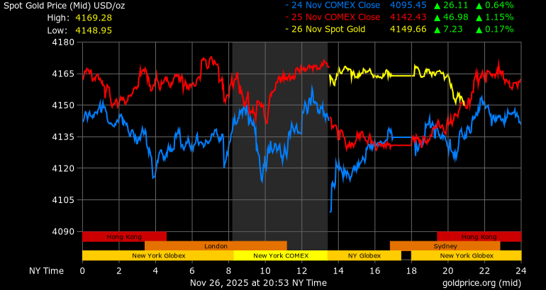Trên thị trường vàng thế giới, giá vàng giao ngay chốt phiên hôm qua tại Mỹ tăng 33 USD, tương ứng tăng 0,8% lên mức 4.163,6 USD/ounce. Sang phiên châu Á sáng nay, giá vàng đảo chiều giảm 13,7 USD xuống 4.149,9 USD/ounce.