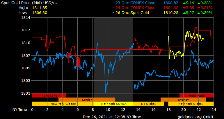 Giá vàng tương lai giao tháng 2/2022 trên sàn Comex New York tăng hơn 7 USD lên 1.808,8 USD/ounce.