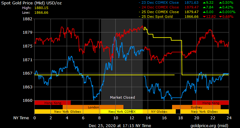 Giá vàng thế giới phiên ngày thứ Sáu nghỉ giao dịch khi thị trường bước vào ngày nghỉ lễ Giáng sinh.