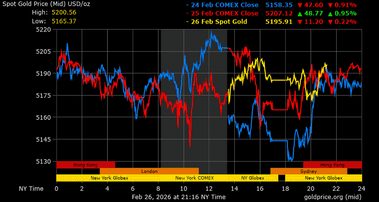 Giá vàng tương lai giao tháng 4/2026 trên sàn Comex New York hôm qua giảm 32 USD, tương ứng giảm 0,61% xuống mức 5.194,2 USD/ounce.