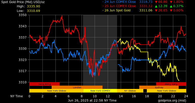 Trên thị trường vàng thế giới, giá vàng giao ngay chốt phiên hôm qua tại Mỹ giảm 4,6 USD xuống mức 3.327,8 USD/ounce. Sang phiên châu Á sáng nay, giá vàng tiếp tục giảm 17,4 USD xuống 3.310,4 USD/ounce.