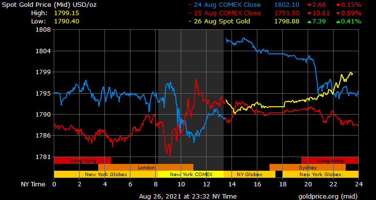 Giá vàng tương lai giao tháng 9 trên sàn Comex New York tăng 3,5 USD lên 1.795,9 USD/ounce.