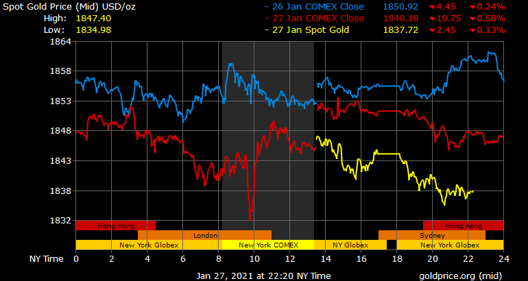 Giá vàng tương lai giao tháng 3 trên sàn Comex New York giảm 9,9 USD xuống 1.836,7 USD/ounce.