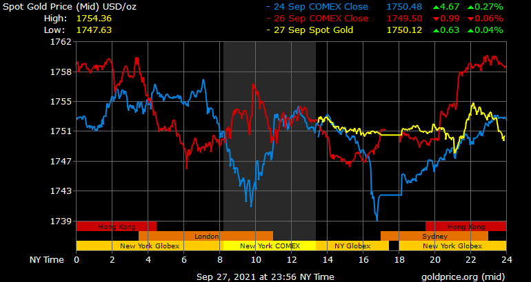 Giá vàng tương lai giao tháng 10 trên sàn Comex New York tăng hơn 1 USD lên 1.751 USD/ounce.