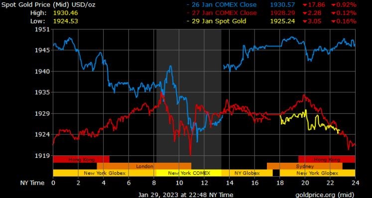 Giá vàng tương lai giao tháng 2/2023 trên sàn Comex New York giảm 0,6 USD xuống 1.929,4 USD/ounce.
