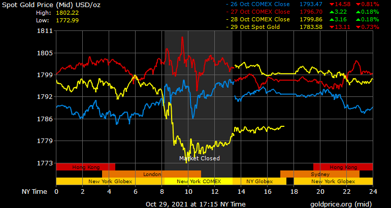 Giá vàng tương lai giao tháng 11 trên sàn Comex New giảm gần 18 USD xuống 1.785 USD/ounce.