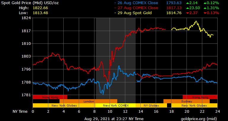 Giá vàng tương lai giao tháng 9 trên sàn Comex New York giảm 1,8 USD xuống 1.814,8 USD/ounce.