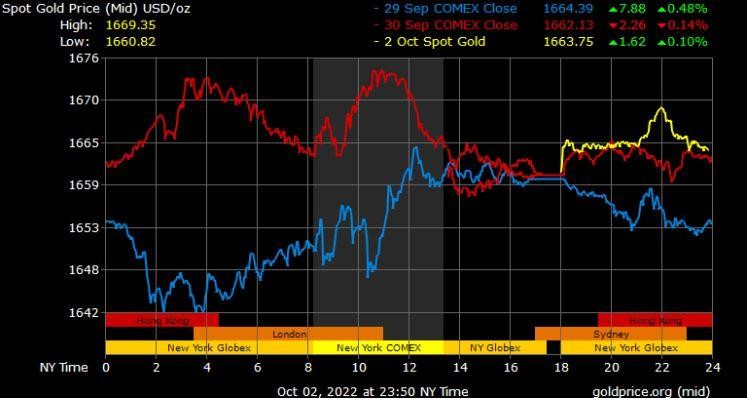 Giá vàng tương lai giao tháng 12/2022 trên sàn Comex New York tăng 3,4 USD lên 1.672 USD/ounce.
