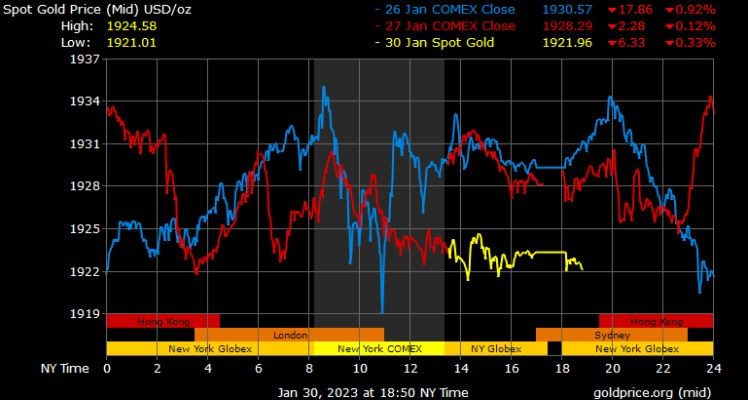 Giá vàng tương lai giao tháng 2/2023 trên sàn Comex New York giảm 6,5 USD xuống 1.922,9 USD/ounce.