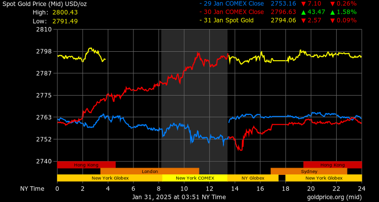 Trên thị trường vàng thế giới, giá vàng giao ngay chốt phiên đêm qua tại Mỹ tăng 34,1 USD lên 2.794,2 USD/ounce. Sang phiên châu Á sáng nay, giá vàng đảo chiều điều chỉnh nhẹ 0,9 USD xuống 2.793,3 USD/ounce.