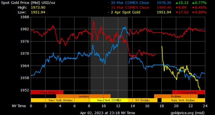 Vàng đã kết thúc tháng 3 dưới mốc 2.000 USD/ounce, tăng 7% trong tháng và 9% từ đầu năm đến nay – hiệu suất hàng tháng tốt nhất kể từ tháng 7/2020 và là kết quả hàng quý tốt nhất kể từ quý II/2020.