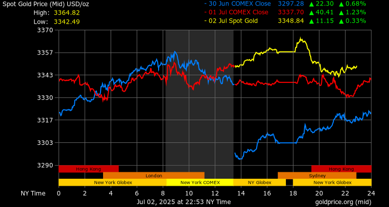 Vàng tương lai tăng nhẹ khi các nhà giao dịch đang chờ báo cáo kinh tế quan trọng của Hoa Kỳ vào sáng thứ Năm – báo cáo tình hình việc làm tháng 6 từ Bộ Lao động (ra sớm hơn một ngày do ngày lễ Độc lập Hoa Kỳ vào thứ Sáu). Con số bảng lương phi nông nghiệp quan trọng được dự kiến ​​sẽ tăng 110.000 so với mức tăng 139.000 trong báo cáo tháng 5.
