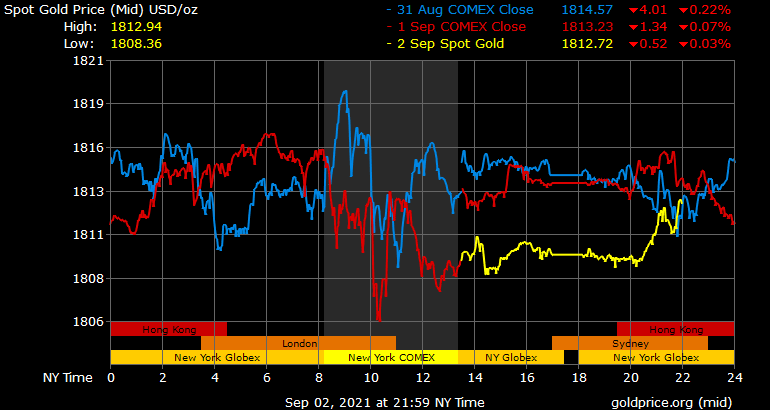 Giá vàng tương lai giao tháng 10 trên sàn Comex New York tăng 2,6 USD lên 1.812 USD/ounce.
