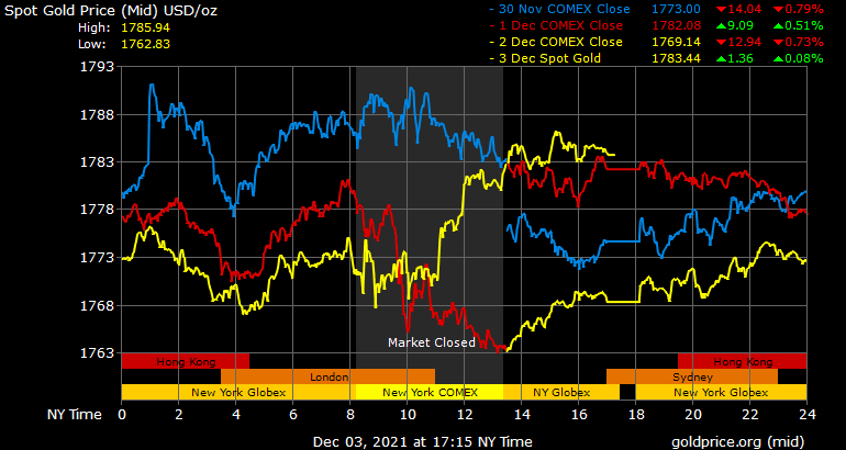 Trên thị trường vàng thế giới, giá vàng giao ngay chốt phiên đêm qua tại Mỹ tăng 13,7 USD lên 1.782,6 USD/ounce. Giá vàng tương lai giao tháng 1/2022 trên sàn Comex New York tăng hơn 22 USD lên 1.783,6 USD/ounce.