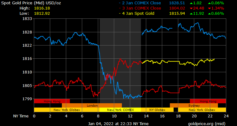 Giá vàng tương lai giao tháng 2/2022 trên sàn Comex New York tăng gần 4 USD lên 1.804 USD/ounce.
