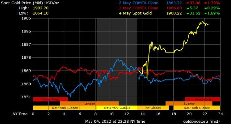 Giá vàng tương lai giao tháng 6/2022 trên sàn Comex New York giảm 1,8 USD xuống mức 1.868,8 USD/ounce.