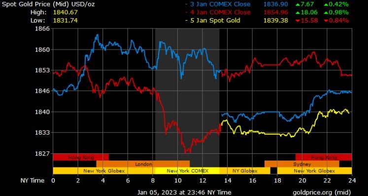 Giá vàng tương lai giao tháng 2/2023 trên sàn Comex New York giảm 18,4 USD xuống 1.840,6 USD/ounce.