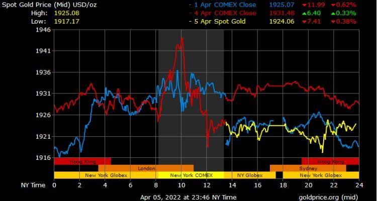 Giá vàng tương lai giao tháng 6/2022 trên sàn Comex New York giảm 6,5 USD xuống 1.927,5 USD/ounce.