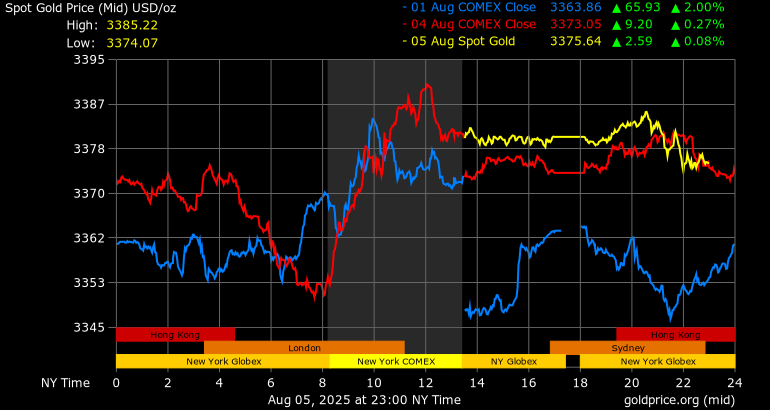 Trên thị trường vàng thế giới, giá vàng giao ngay chốt phiên hôm qua tại Mỹ tăng 7,3 USD lên mức 3.381 USD/ounce. Sang phiên châu Á sáng nay, giá vàng đảo chiều giảm nhẹ 4,7 USD xuống 3.376,3 USD/ounce.