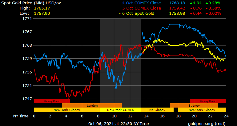 Giá vàng tương lai giao tháng 11 trên sàn Comex New York giảm 3 USD xuống 1.758 USD/ounce.