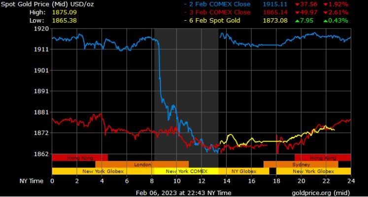 Mặc dù đã hồi phục nhưng giá vàng vẫn giao dịch dưới mốc 1.900 USD, chạm mức thấp nhất trong 4 tuần qua đêm. Những người đầu cơ giá lên hiện đang nỗ lực để cầm cự sau báo cáo việc làm mạnh mẽ đáng ngạc nhiên của Hoa Kỳ vào thứ Sáu tuần trước đã làm chao đảo thị trường kim loại quý.