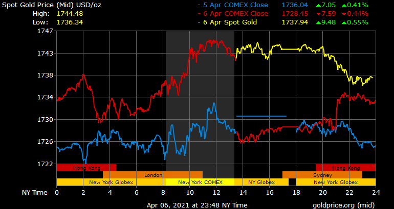 Giá vàng tương lai giao tháng 5 trên sàn Comex New York giảm 4,9 USD xuống 1.737,1 USD/ounce.