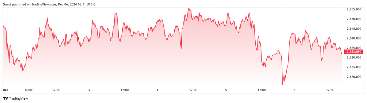 Vàng đã trải qua tuần biến động giằng co, liên tục xoay quanh mức giá 2.645 USD/ounce và củng cố thêm quan điểm phổ biến rằng thị trường đang trong mô hình giữ nguyên trước năm 2025.