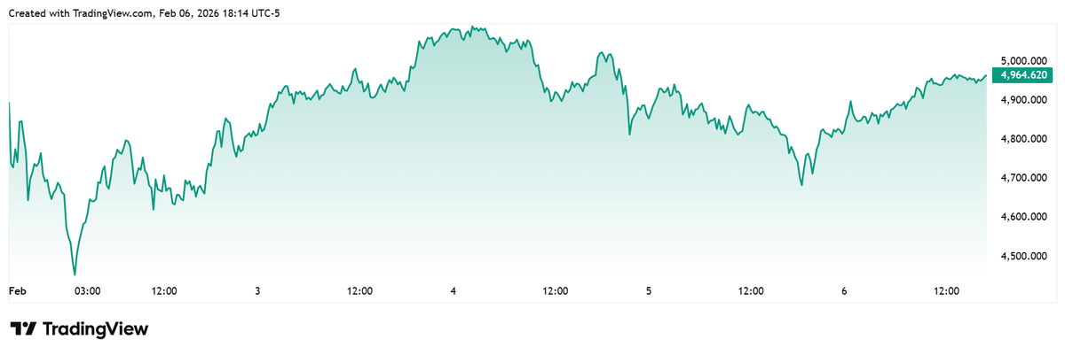 Trên thị trường vàng thế giới, giá vàng giao ngay chốt phiên hôm qua tại Mỹ tăng mạnh 183,9 USD, tương ứng tăng 3,85% lên mức 4.964,6 USD/ounce.