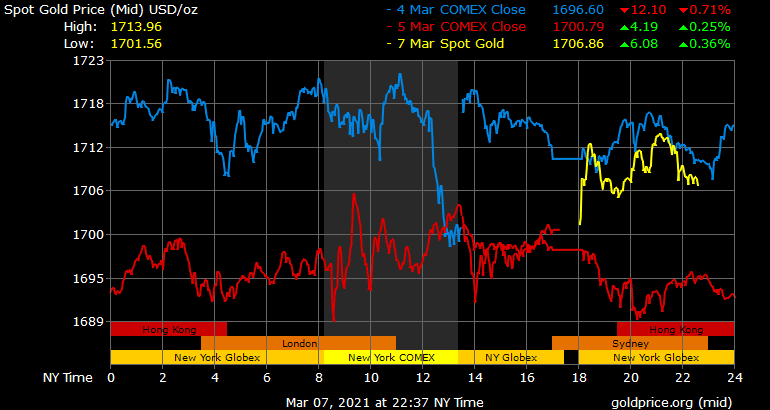 Giá vàng tương lai giao tháng 4 trên sàn Comex New York tăng 6,2 USD lên 1.704,2 USD/ounce.