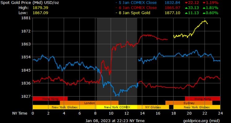 Giá vàng tương lai giao tháng 2/2023 trên sàn Comex New York tăng 29,1 USD lên 1.869,7 USD/ounce.