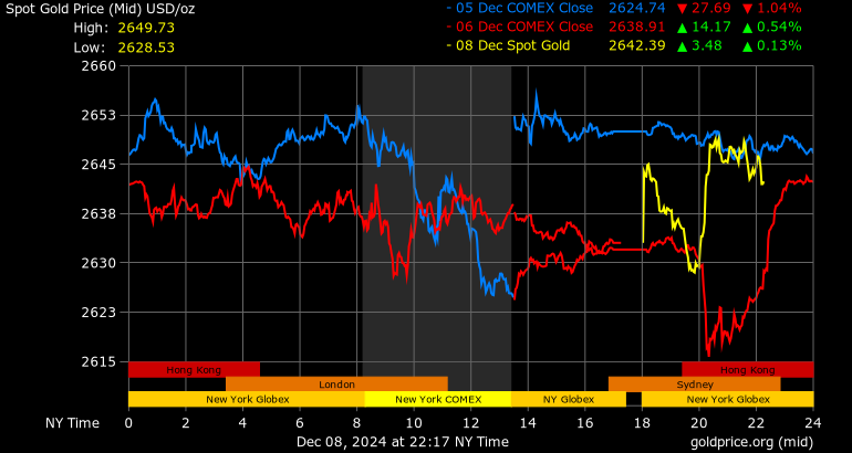 Giá vàng tương lai giao tháng 2/2025 trên sàn Comex New York tăng 11,2 USD, tương ứng tăng 0,42% lên mức 2.659,6 USD/ounce.