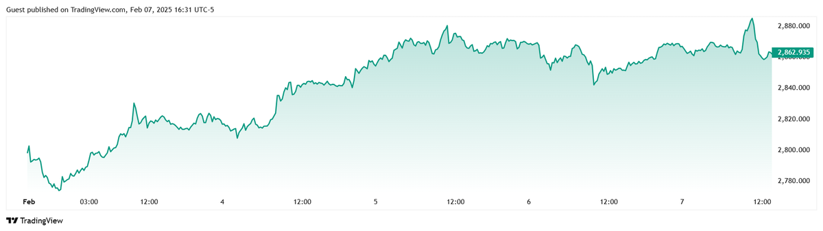 Giá vàng tương lai giao tháng 4/2025 trên sàn Comex New York tăng 10,9 USD, tương ứng tăng 0,38% lên mức 2.887,6 USD/ounce. Tính chung cả tuần, giá vàng giao ngay tăng 52,6 USD/ounce, tương ứng tăng 1,86%.