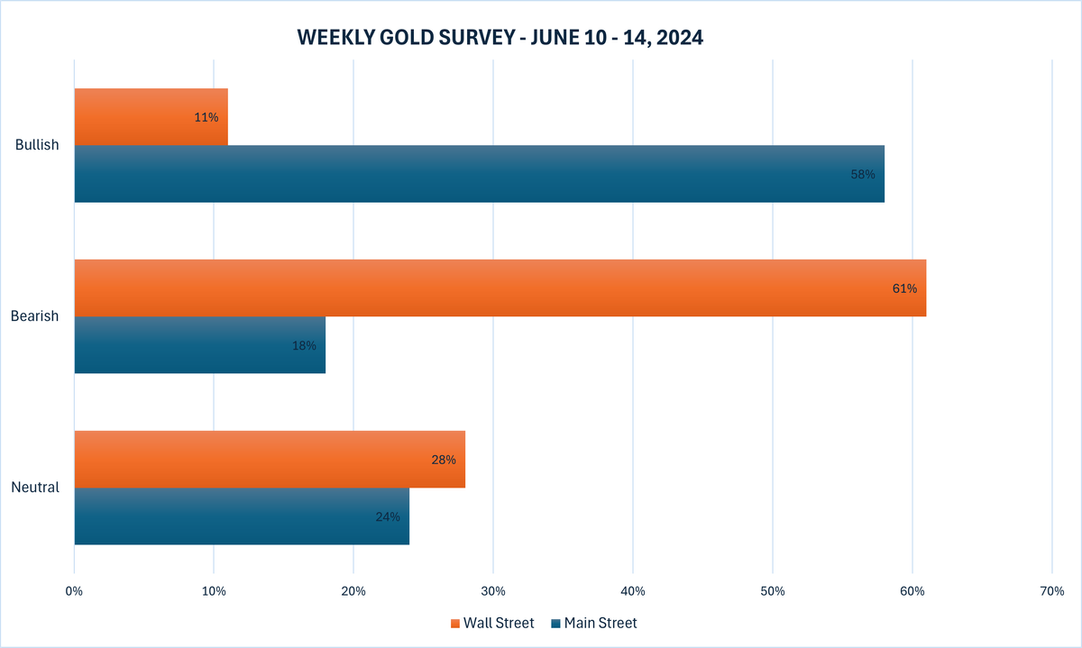 Cuộc khảo sát vàng hàng tuần mới nhất của Kitco News cho thấy phần lớn các chuyên gia trong ngành không đồng tình với triển vọng ngắn hạn của vàng, trong khi hầu hết các nhà giao dịch bán lẻ đều nhận thấy vàng sẽ tăng trong tuần tới, mặc dù hầu hết đều bỏ phiếu trước khi pháo hoa sáng thứ Sáu.