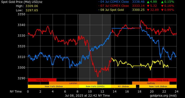 Giá vàng tương lai giao tháng 8/2025 trên sàn Comex New York giảm 25,9 USD, tương ứng giảm 0,77% xuống mức 3.316,9 USD/ounce.