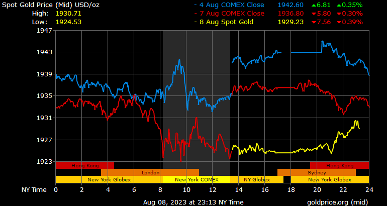 Trên thị trường vàng thế giới, giá vàng giao ngay chốt phiên hôm qua tại Mỹ giảm 11,4 USD lên 1.925 USD/ounce. Sang phiên châu Á sáng nay, giá vàng đảo chiều hồi nhẹ lên mức 1.928,7 USD/ounce.