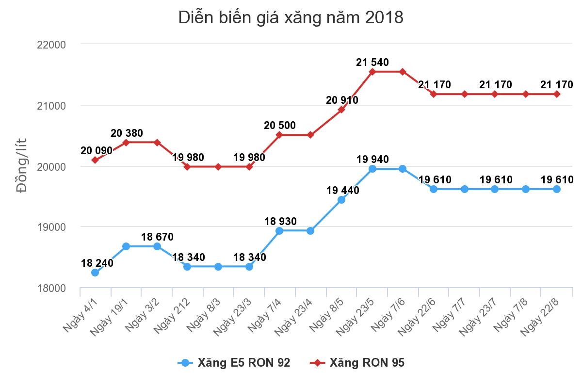 Sau điều chỉnh, giá xăng E5RON 92 vẫn ở mức 19.610 đồng một lít, xăng RON 95 là 21.170 đồng.