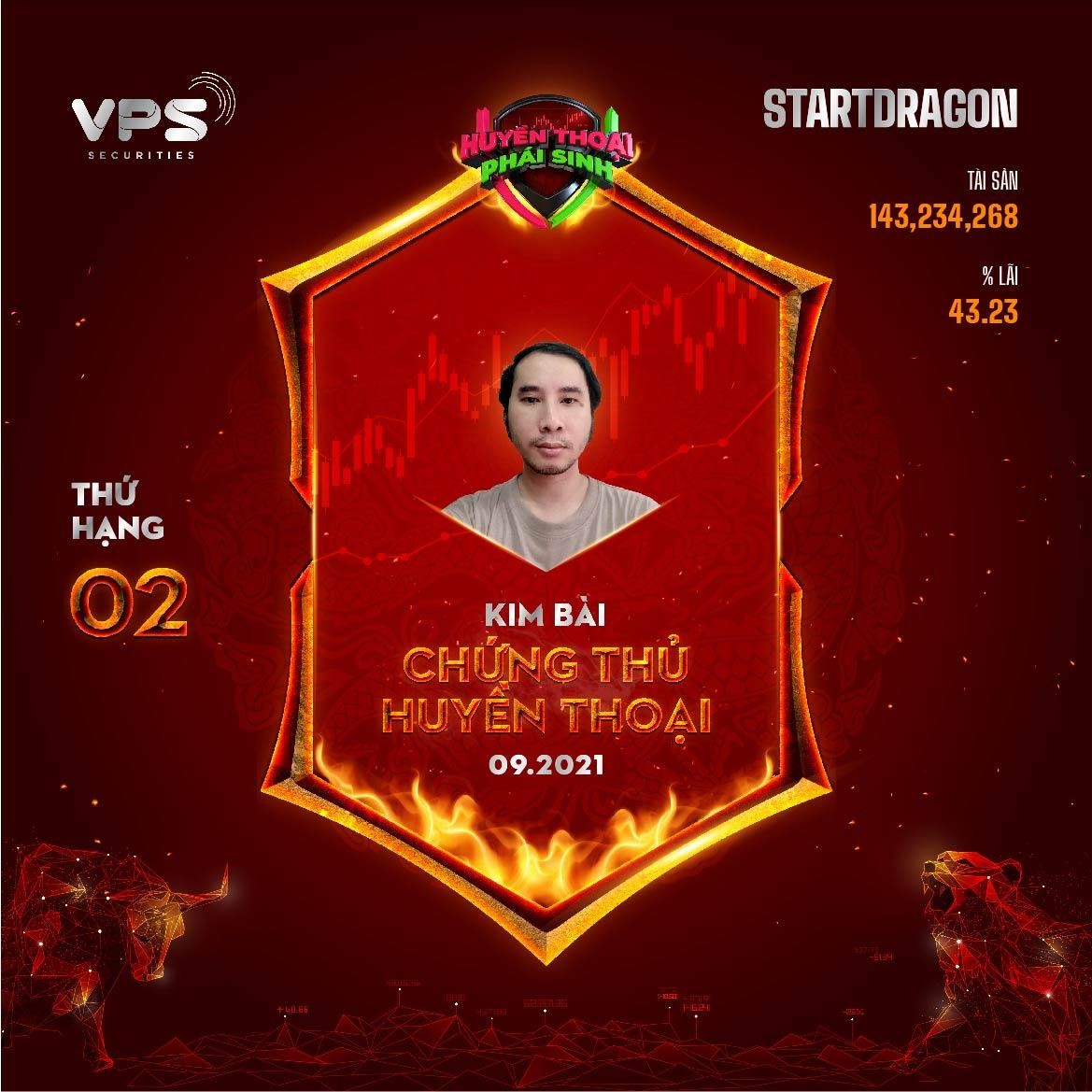 Vị trí Á quân thuộc về người chơi @startdragon với tổng tài sản hơn 143 triệu đồng và tỷ lệ lãi đạt 43,23%.