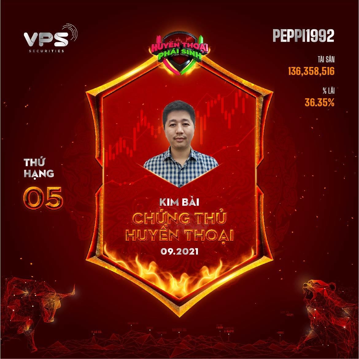 Bên cạnh những chứng thủ dẫn đầu, ngôi sao mới - tài khoản @peppi1992 cũng cho thấy sự ‘đáng gờm” của mình khi sở hữu 79 hợp đồng - ít nhất trong số các chứng thủ của bảng tổng sắp, chỉ bằng 1/63 so với Quán quân nhưng tự tin ghi danh ở vị trí thứ 5 với tổng tài sản hơn 136 triệu đồng và tỷ lệ lãi đạt 36,35%. Anh dành 15-30 phút mỗi ngày để tham gia thi đấu với chiến thuật đặt vị thế Long ở hỗ trợ và Short ở kháng cự.