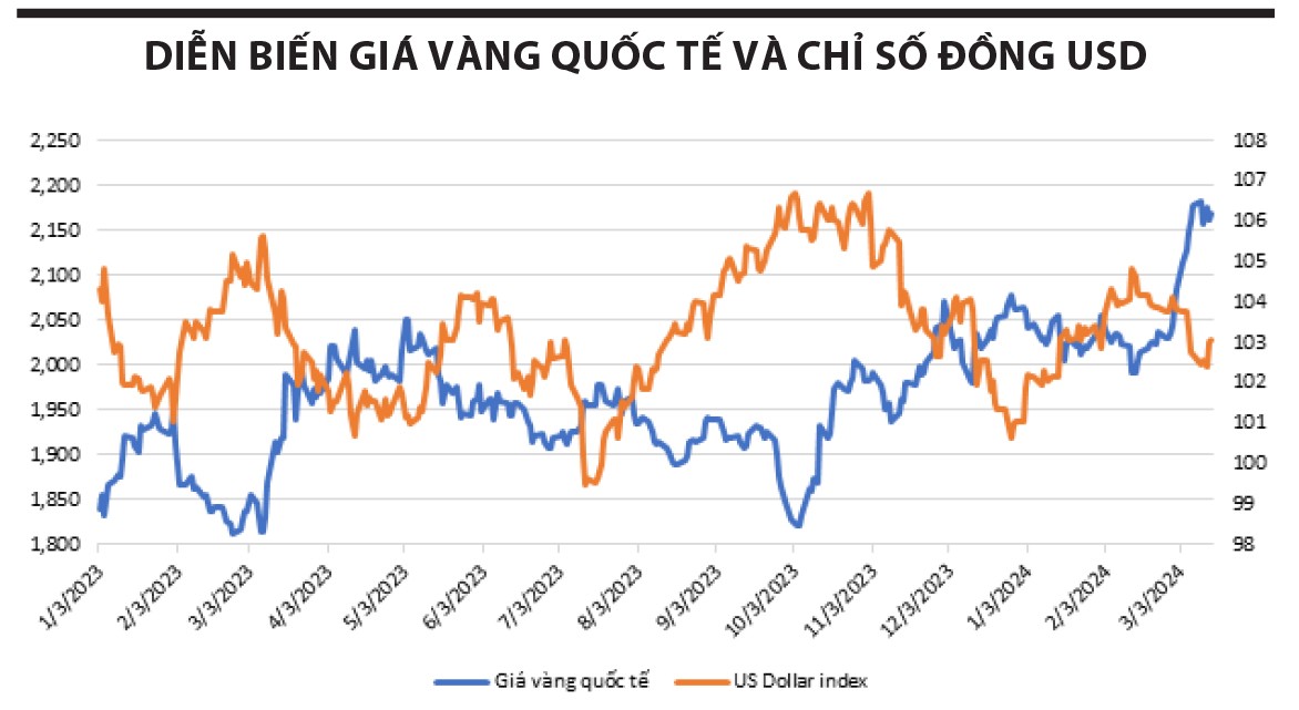 Bên cạnh đó, Ngân hàng Nhà nước đang phát hành tín phiếu để hút tiền ngoài thị trường về hệ thống (hút được 75.000 tỷ đồng sau 5 phiên liên tiếp tính đến ngày 15/3/2024) dẫn tới tâm lý lo ngại của một bộ phận nhà đầu tư về nguy cơ bất ổn vĩ mô, trong bối cảnh áp lực tỷ giá gia tăng và đà tăng mạnh của giá vàng, cũng như chỉ số US Dollar có dấu hiệu tăng trở lại.