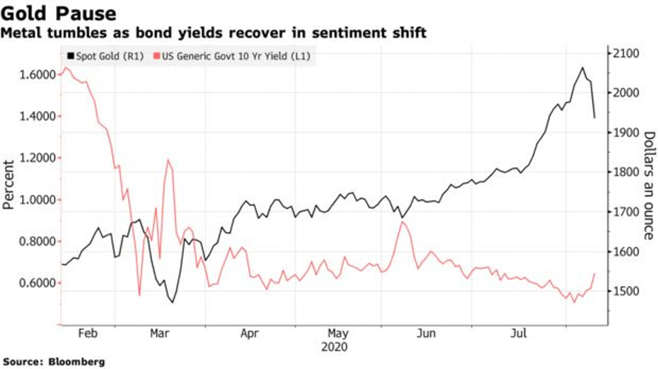 Bên cạnh đó, thông tin từ việc Nga chế tạo thành công vắc xin cho Covid-19 cũng là yếu tố làm sụt giảm nhu cầu nắm giữ vàng.