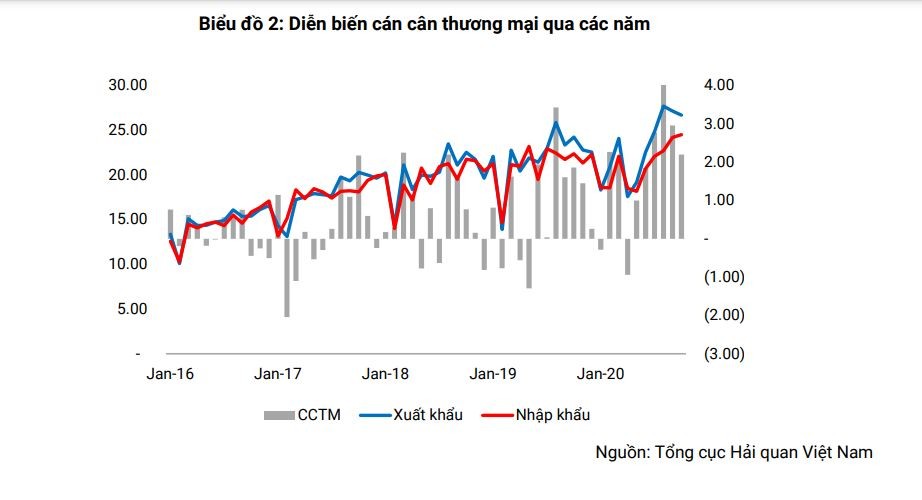 Thứ hai, bối cảnh vĩ mô và thị trường tài chính trong nước - quốc tế thuận lợi. Một mặt, nguồn cung ngoại tệ tiếp tục duy trì trạng thái dồi dào kể từ đầu năm khi cán cân thương mại đạt mức thặng dư cao kỷ lục và hoạt động giải ngân FDI sôi động trở lại nhờ dịch bệnh trong nước được kiểm soát hiệu quả.