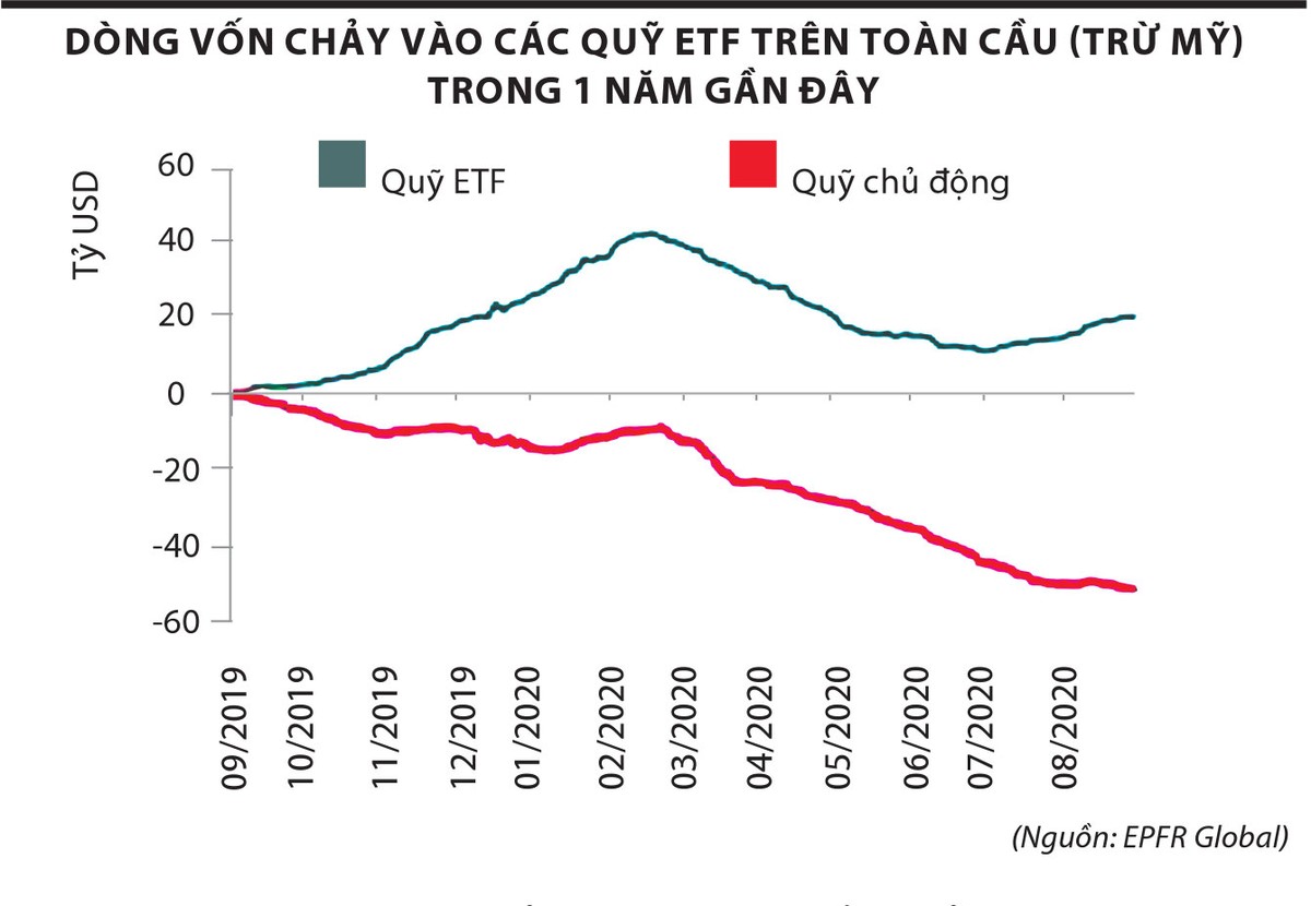 Các quỹ ETF lên ngôi đang là xu hướng chung trên toàn cầu. Các quỹ đầu tư toàn cầu tại các thị trường phát triển (ngoại trừ Mỹ) và các thị trường mới nổi đều đón nhận dòng tiền vào mạnh trong 2 tháng trở lại đây, đặc biệt là trong tháng 8. Dòng vốn vào các quỹ ETF ở Nhật Bản, Hồng Kông, Singapore, châu Âu, Thái Lan, Malaysia, Việt Nam đều rất tích cực.