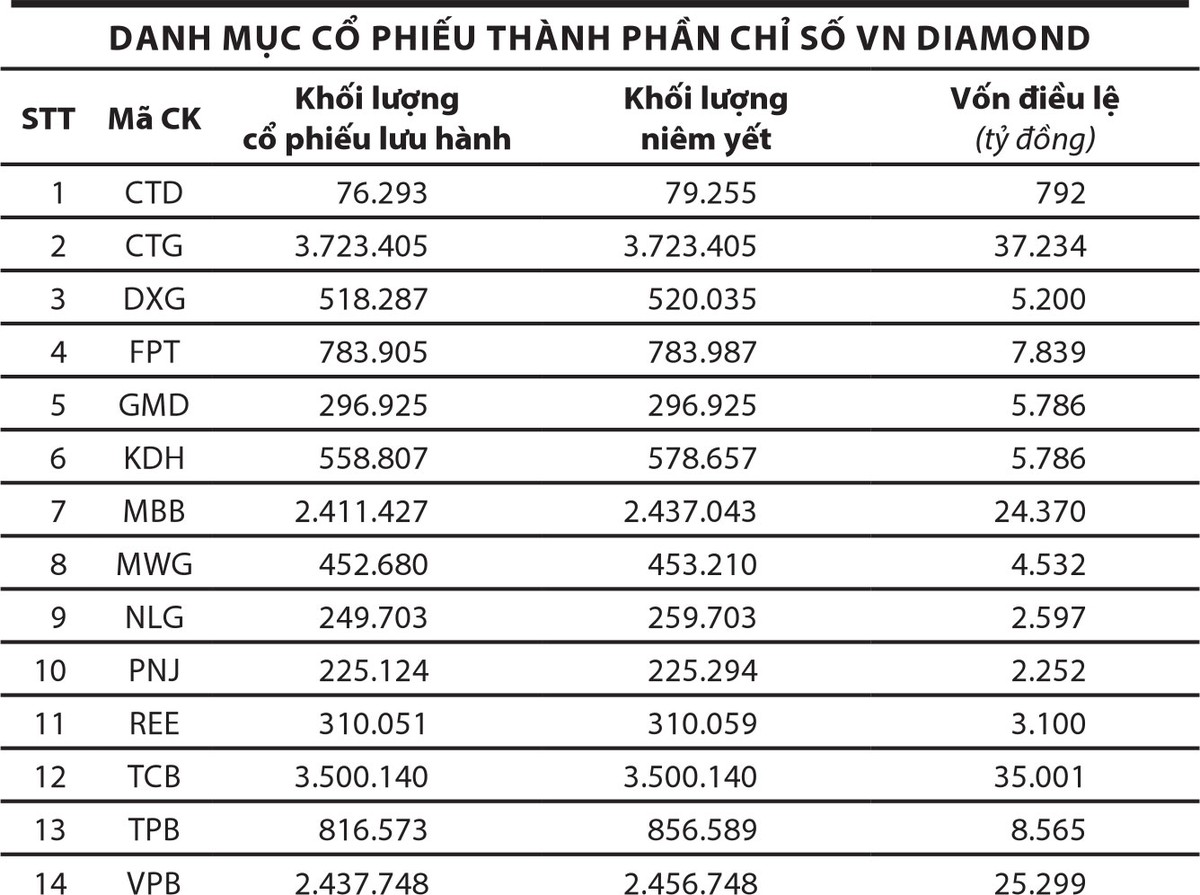 Hàng năm, HOSE công bố kết quả thay đổi các cổ phiếu thành phần của các rổ chỉ số VN30, VNFin Lead, VN Diamond… vào tháng 7 và tháng 1. Theo đó, các quỹ đầu tư theo các rổ chỉ số này sẽ tiến hành hoạt động tái cơ cấu danh mục tương ứng.