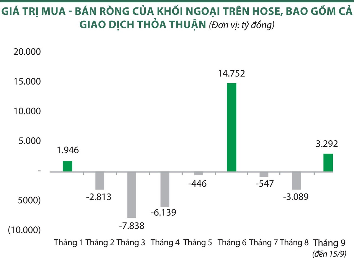 Hai tuần đầu tháng 9, khối này mua ròng nhờ phiên giao dịch thỏa thuận hơn 5.400 tỷ đồng cổ phiếu VHM.