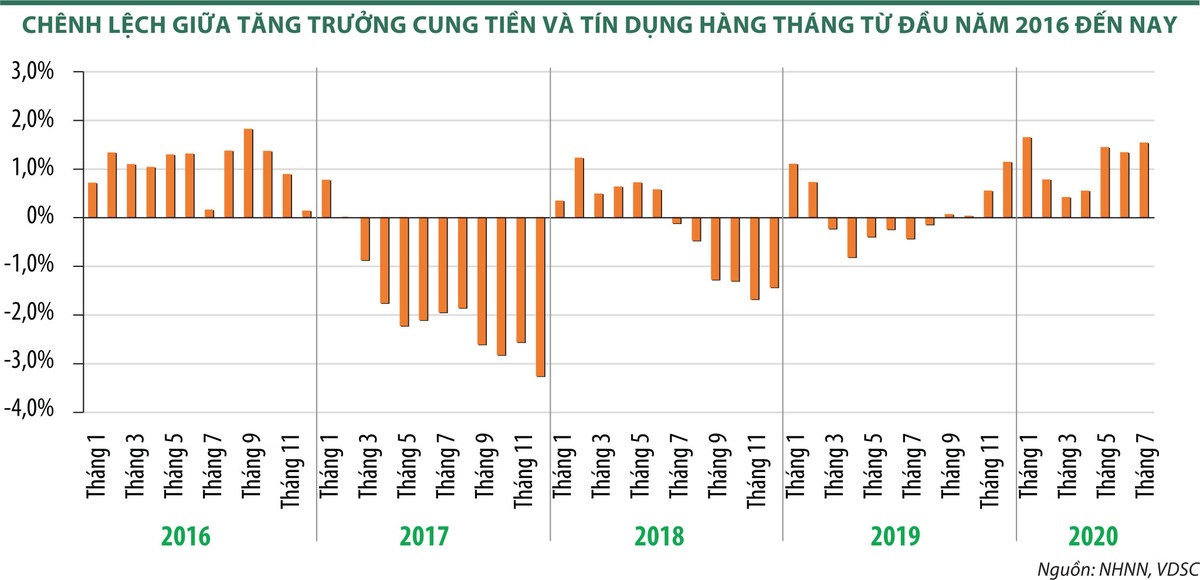 Trong khi đó, môi trường kinh tế hiện tại chứa đựng không ít rủi ro. Do đó, nguồn vốn đầu vào dư thừa với chi phí thấp nhưng điều kiện cho vay ở các lĩnh vực đầu tư tài chính (vốn được xem là có hệ số rủi ro cao) không được nới lỏng.