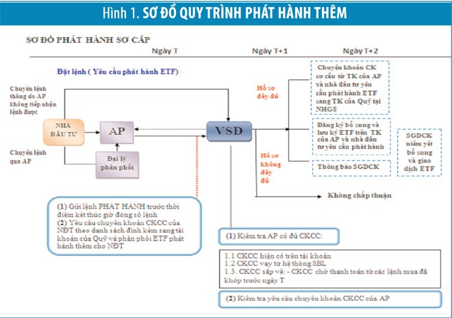 lThanh toán cho NĐT, AP vào ngày T+2 (ngày T là ngày giao dịch hoán đổi). Đối với các lệnh mua, VSD chuyển khoản số CKCC từ tài khoản AP, NĐT sang tài khoản của Quỹ ETF tại ngân hàng giám sát; đồng thời đăng ký bổ sung, lưu ký và ghi tăng số CCQ ETF phát hành thêm vào tài khoản của AP, NĐT. Đối với lệnh bán, VSD chuyển khoản số lượng CKCC từ tài khoản Quỹ ETF tại ngân hàng giám sát sang tài khoản của AP, NĐT; đồng thời rút lưu ký, hủy đăng ký và ghi giảm số CCQ ETF trên tài khoản AP, NĐT.