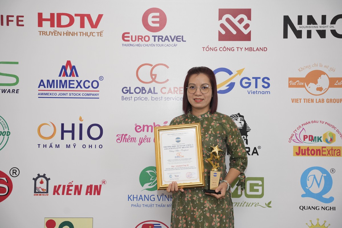| Bà Đinh Thị Ngọc Niềm - CEO Global Care nhận giải Top 10 - Thương hiệu chuyển đổi số xuất sắc Châu Á 2023. |