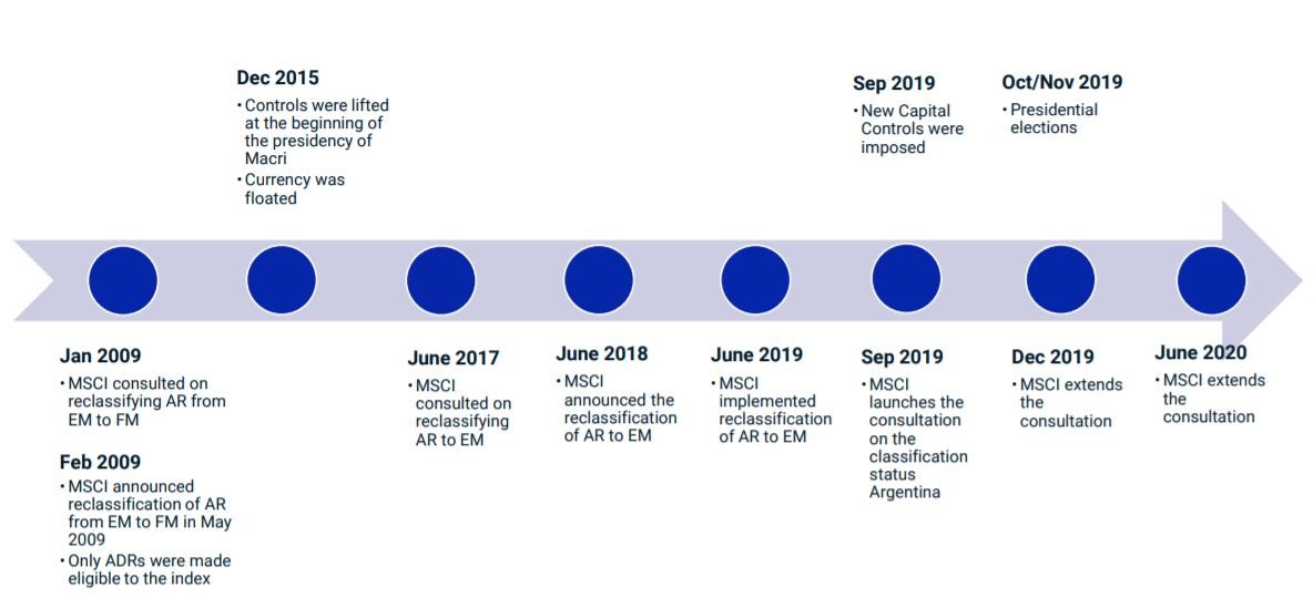Có những trường hợp thời gian đánh giá lên đến 5 năm hoặc hơn nữa. Như trường hợp của Argentina gần nhất, chỉ vì vi phạm tiêu chí về kiểm soát vốn, MSCI lập tức đưa vào dạng cảnh báo và khả năng loại MSCI ra khỏi thị trường Mới nổi.