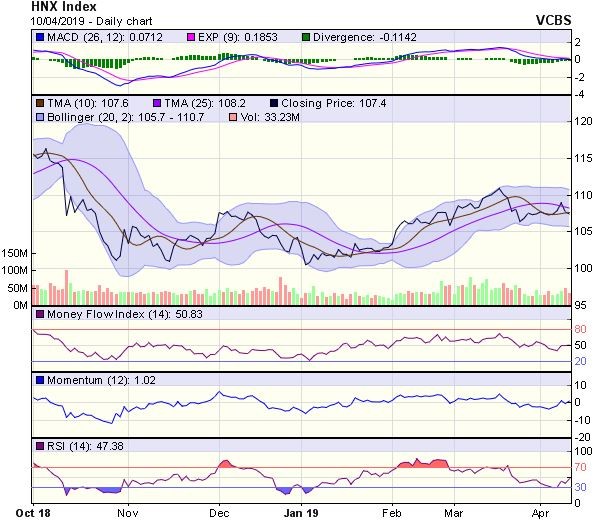 Trong trường hợp, chỉ số không giữ được trên vùng hỗ trợ 107 điểm (MA50), thì ngưỡng 105.4 điểm (MA100) có thể là ngưỡng hỗ trợ tiếp theo.